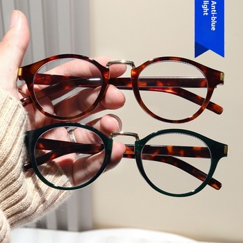 Fashionable Anti Blue Light Glasses with Round Frame Blue and Transparent Concave Shape for Street Photos